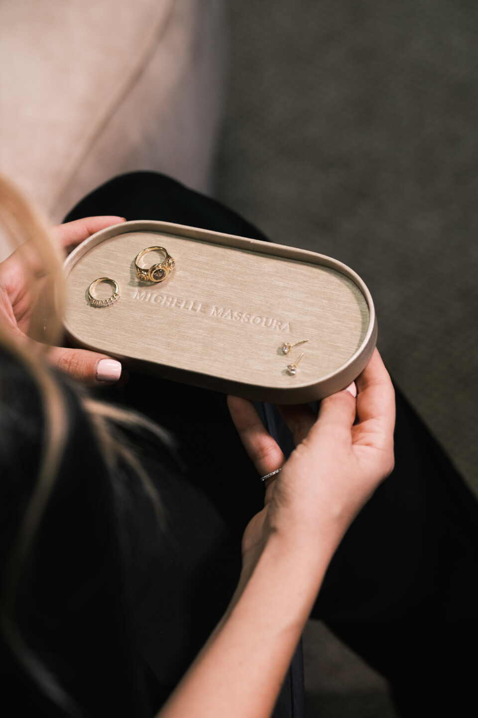 Designing this tray was such a fun and creative process. I spent time experimenting with samples, refining the shape, and selecting the perfect material: a gold-toned leather finish that feels both elegant and effortlessly chic. Each one is handmade in Cyprus by a local artisan and crafted with the same care that goes into every piece of jewellery we create.